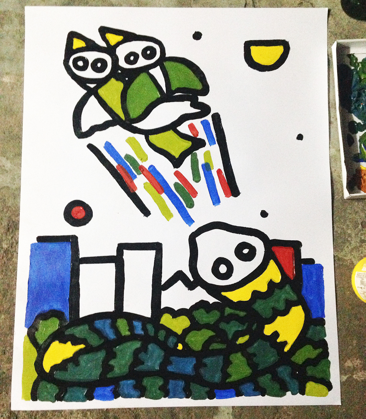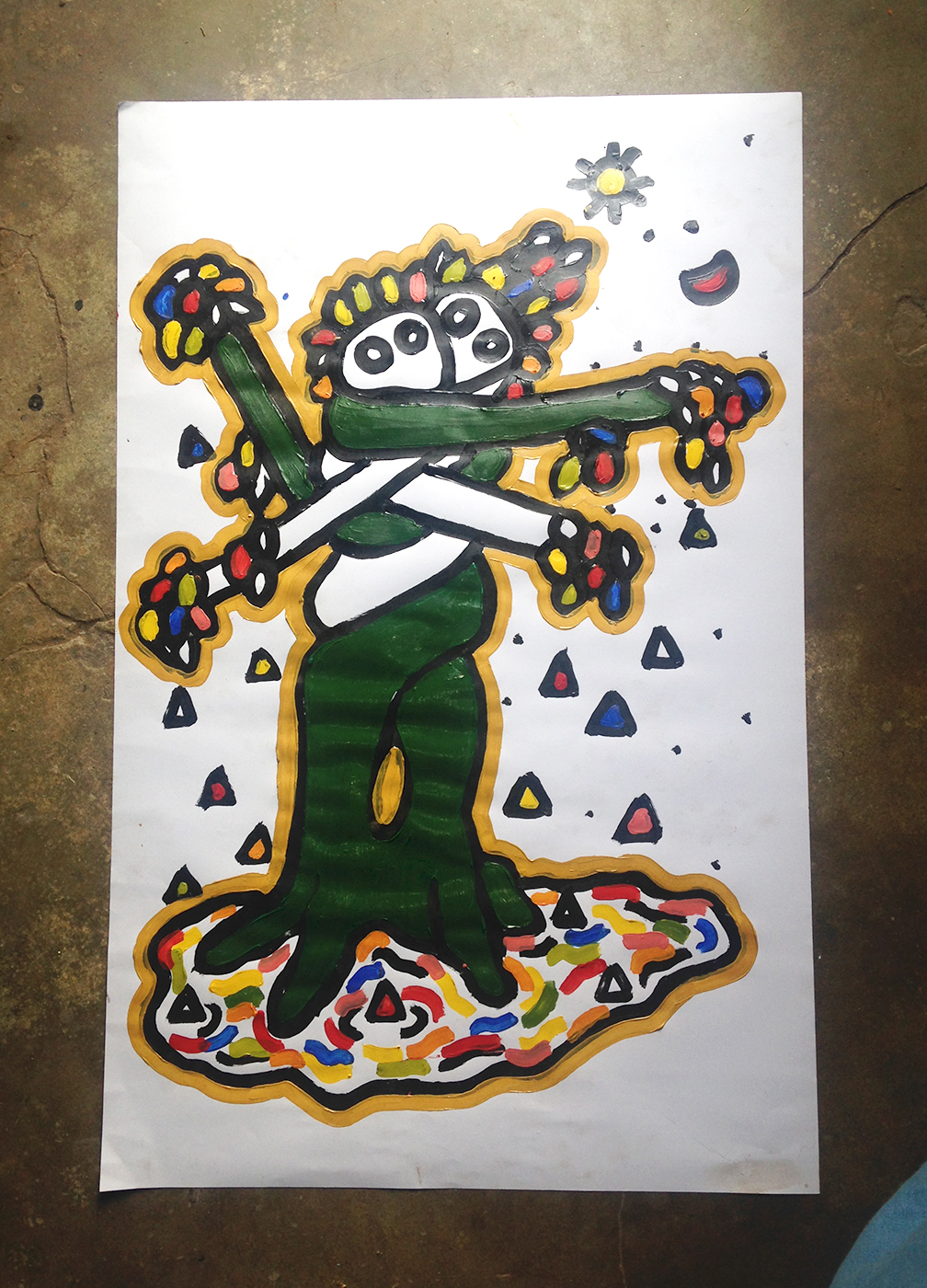 Durante esa estancia, el viaje es fuerte de emociones y continué de manera paralela desarollando mi parte individual. Inicié el proyecto de piedras y el de flores, pinté mis propios murales pequeños y bastantes papeles (una pena no tener fotografías buenas de todos).