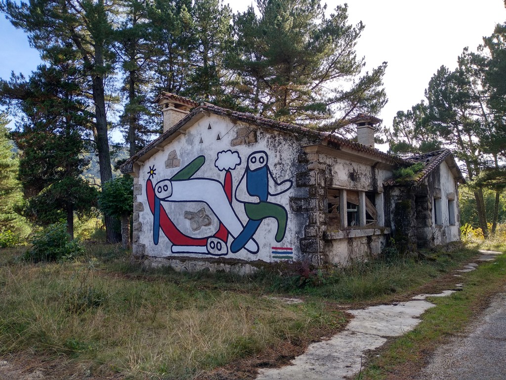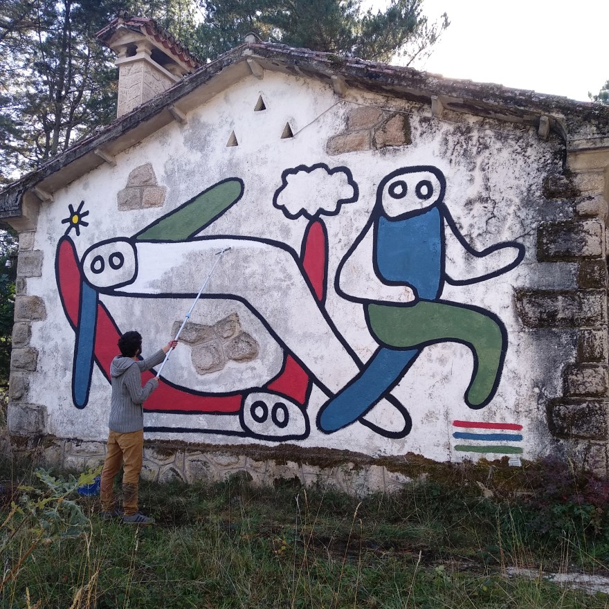 Un mural pintado sobre los restos de una aldea construida para construir algo más grande y desaparecer. Como si de un pueblo nómada se tratase.