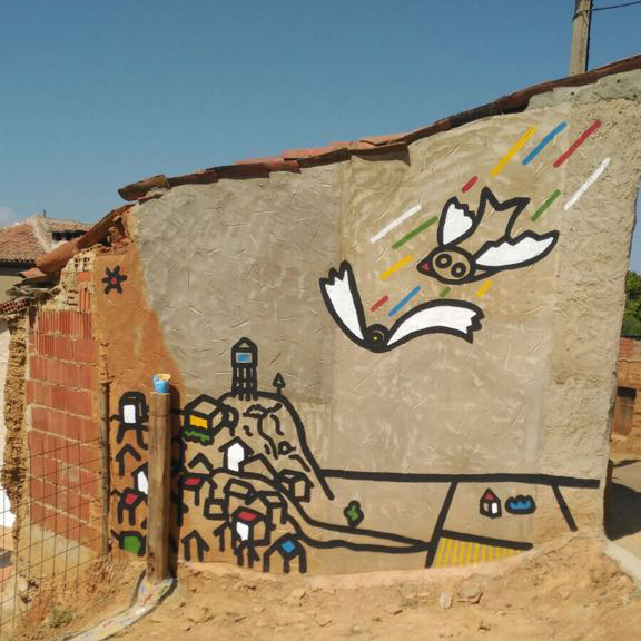 Un mural pintado sobre los restos de una aldea construida para construir algo más grande y desaparecer. Como si de un pueblo nómada se tratase.
