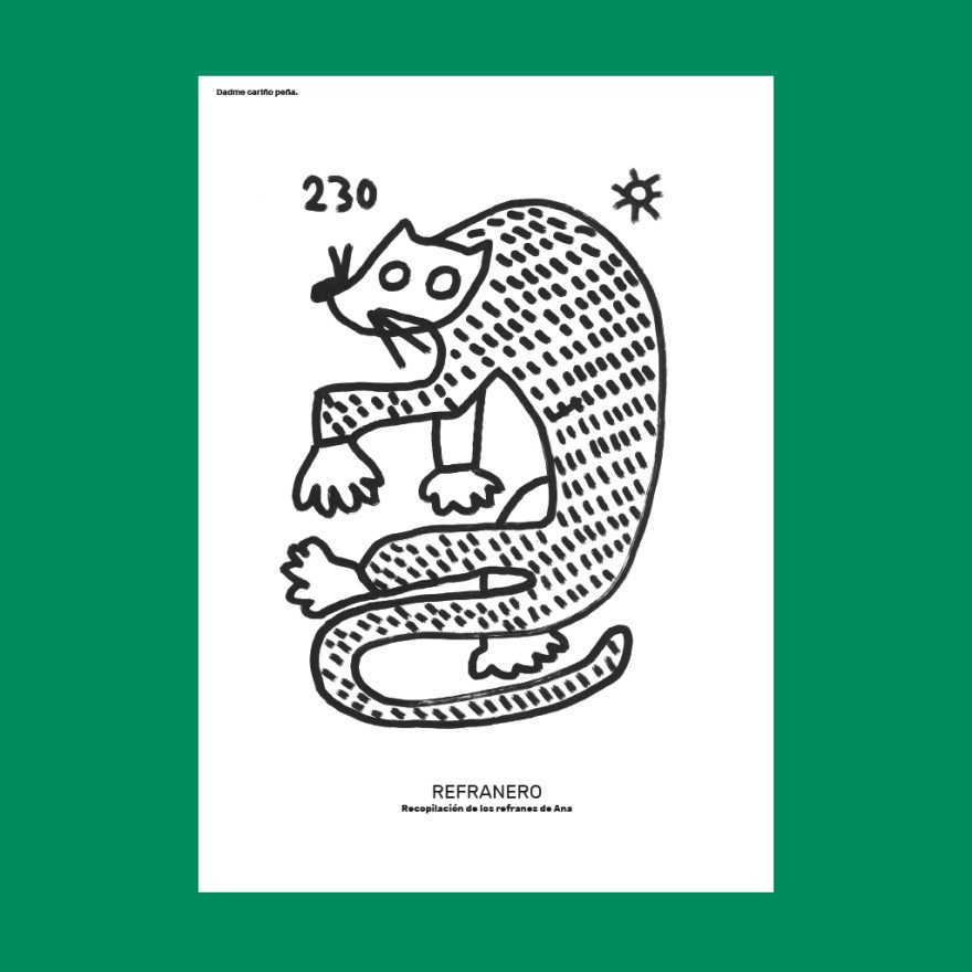 Es una recopilación de refranes recogidos en un periodo muy concreto de tiempo, en el cual intenté conectar con un retrato imaginario de mi madre de joven; cómo comprendía la naturaleza, los comportamientos humanos, con referencias a la religión, la costura y las costumbres….