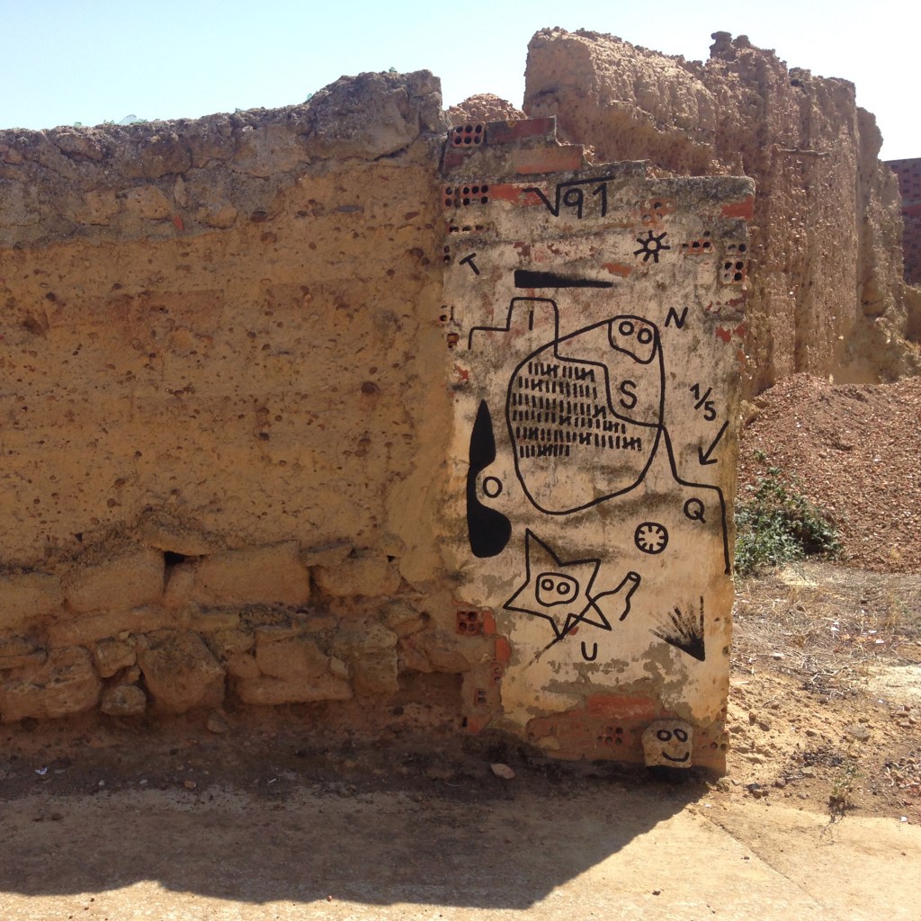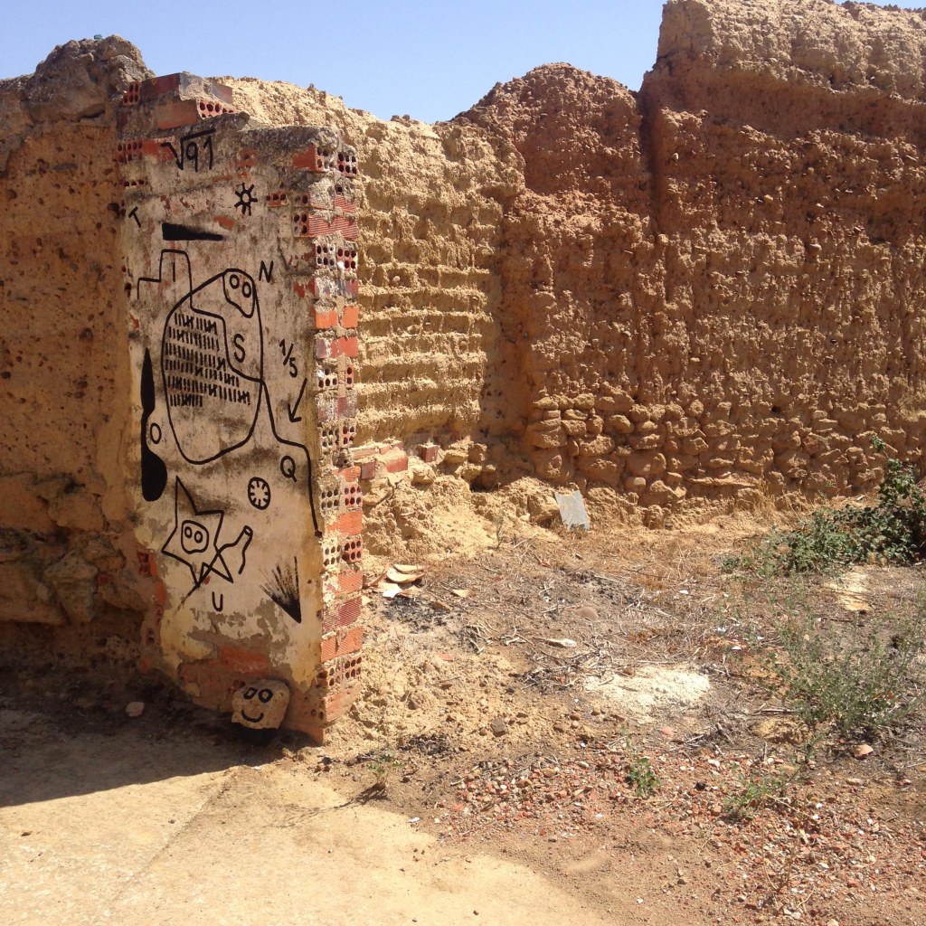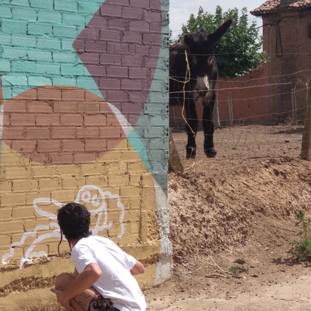 Castrogonzalo es un pueblo de Tierra de Campos, cerca de Benavente, en Zamora. De allí es Parsec (Antonio Feliz). Lleva organizando de la mano de Madrid Street Art Proyect unas jornadas de convivencia entre artístas, habitantes del pueblo y visitantes. Esta es la intervención que realicé durante mi segunda visita, en 2019, así que busqué un muro pequeñito y discreto, donde integrar un dibujo pensando en los quintos e intentado no ser muy invasivo.